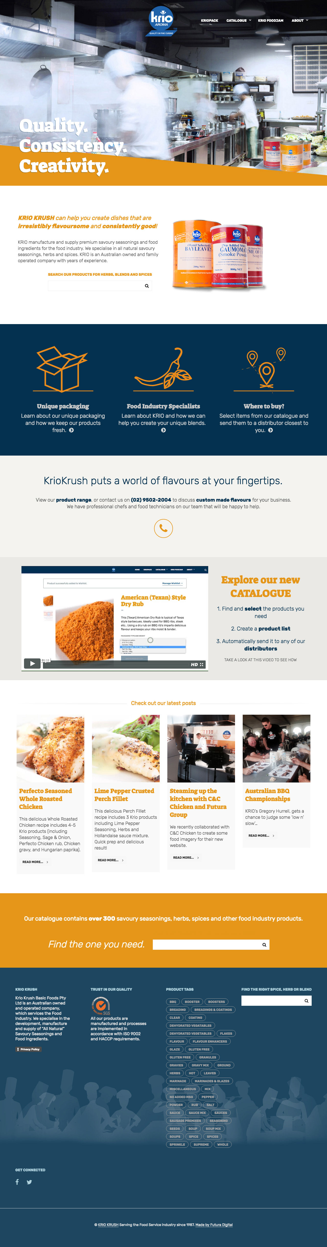 Krio Krush is an Australian owned family company, that specialises in all natural savoury seasonings, herbs and spices. Krio needed to display their products in an interactive catalogue that would allow their visitors to create a product wishlist that can be sent directly to their wholesalers. The site was created under auspices of Futura Group.